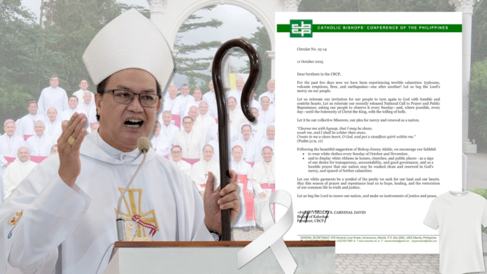 TARLAKENYO (Oct. 11, 2025) — The Catholic Bishops’ Conference of the Philippines (CBCP) has issued a pastoral appeal calling for a nationwide season of prayer and public repentance, urging the faithful to wear white and display white ribbons as a symbolic plea for divine mercy and national renewal amid a series of devastating calamities.