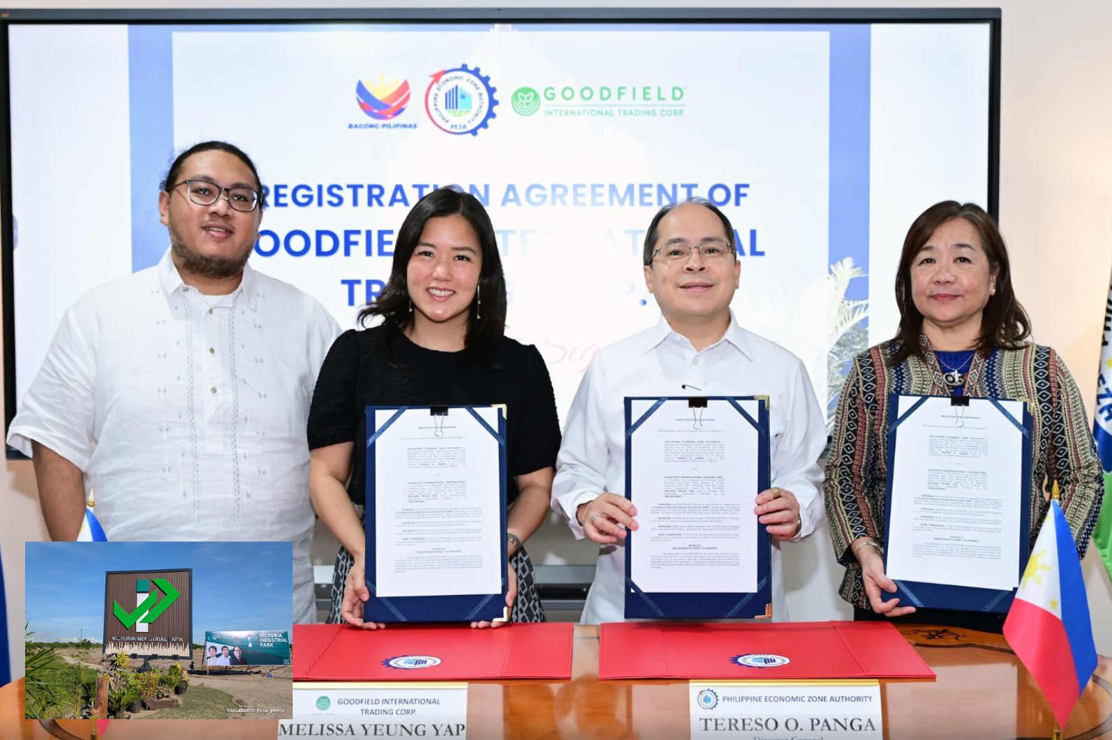 On March 30, PEZA Director General Tereso Panga and Goodfield president Melissa Yeung-Yap signed a registration agreement. PEZA Deputy Director General for Operations Vivian Santos witnessed the signing.